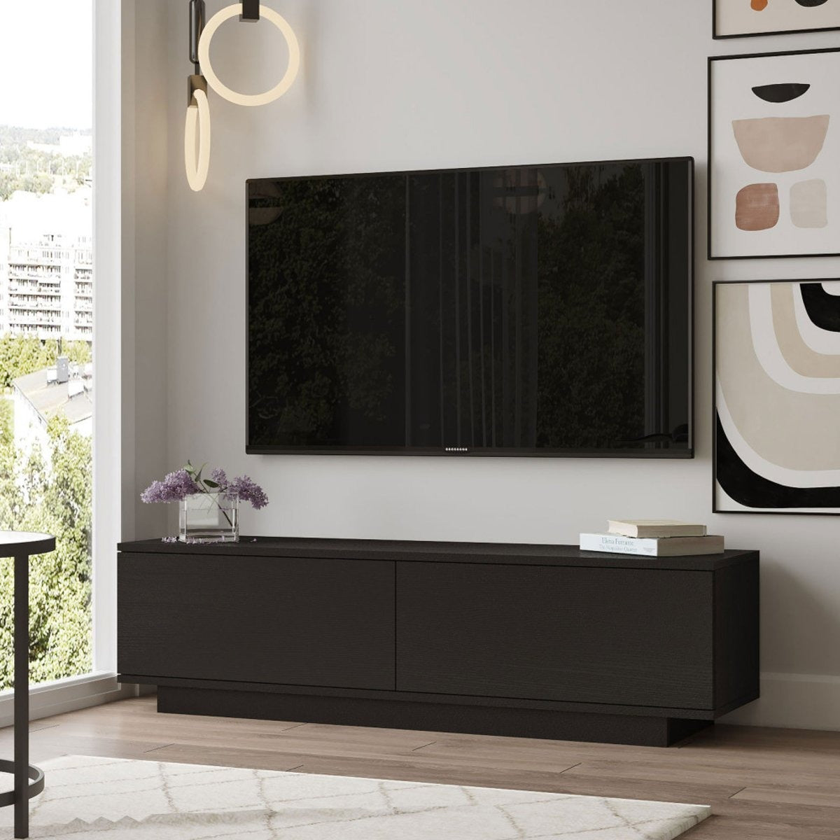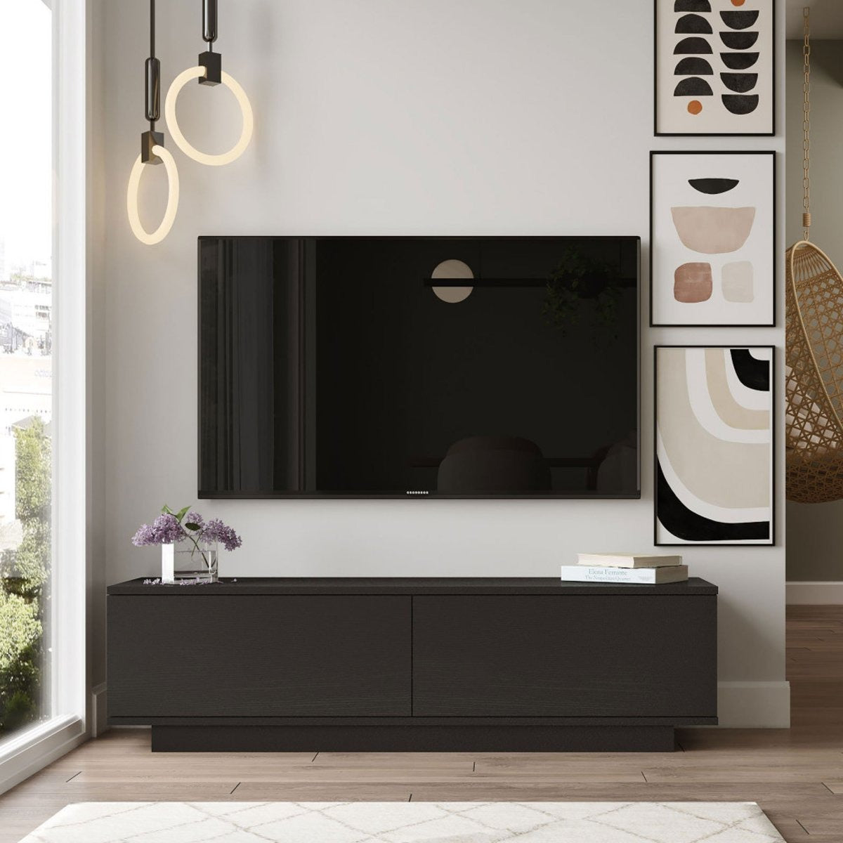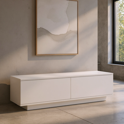 Dit TV-meubel is een stijlvolle en duurzame oplossing voor jouw woonkamer. Het meubel staat op een plint, wat zorgt voor een strakke en luxe uitstraling.