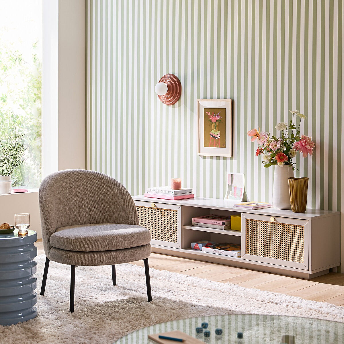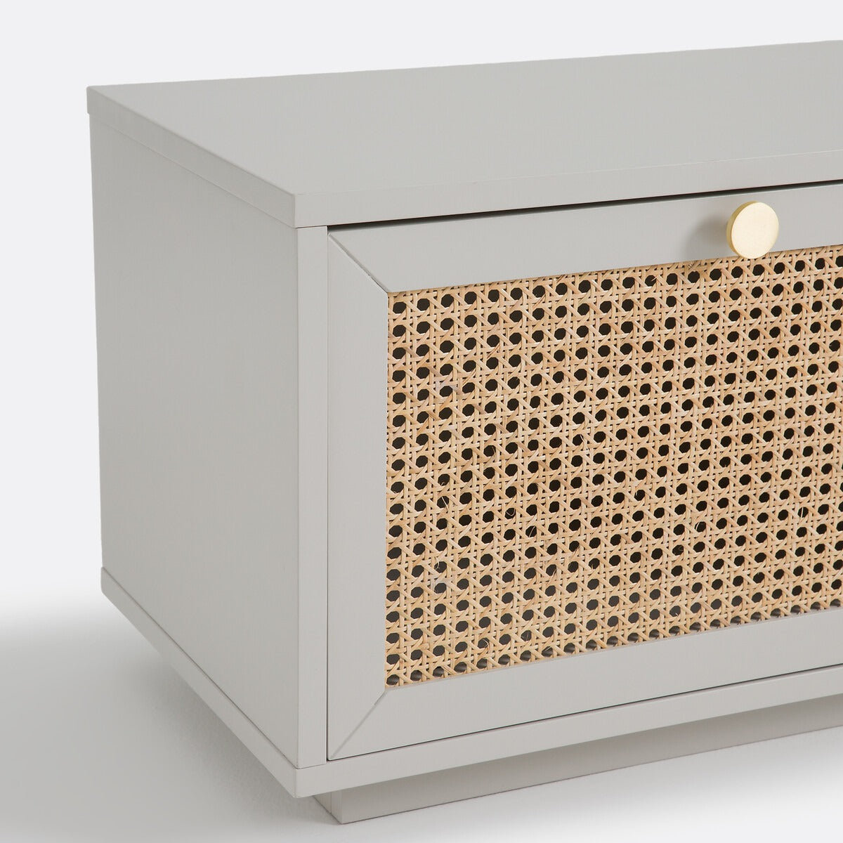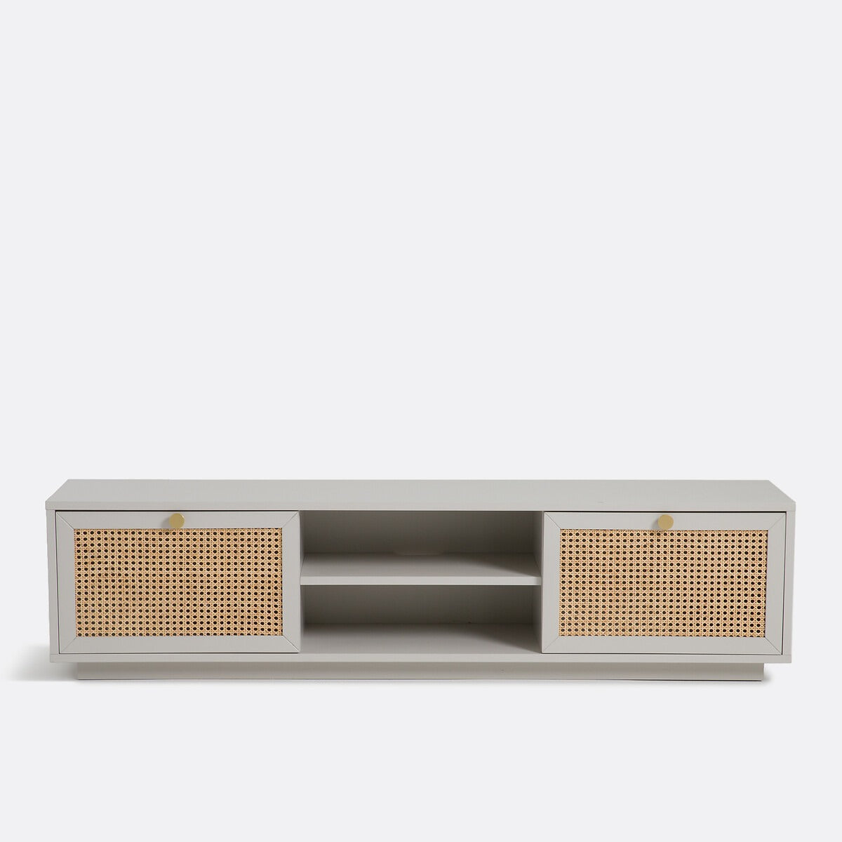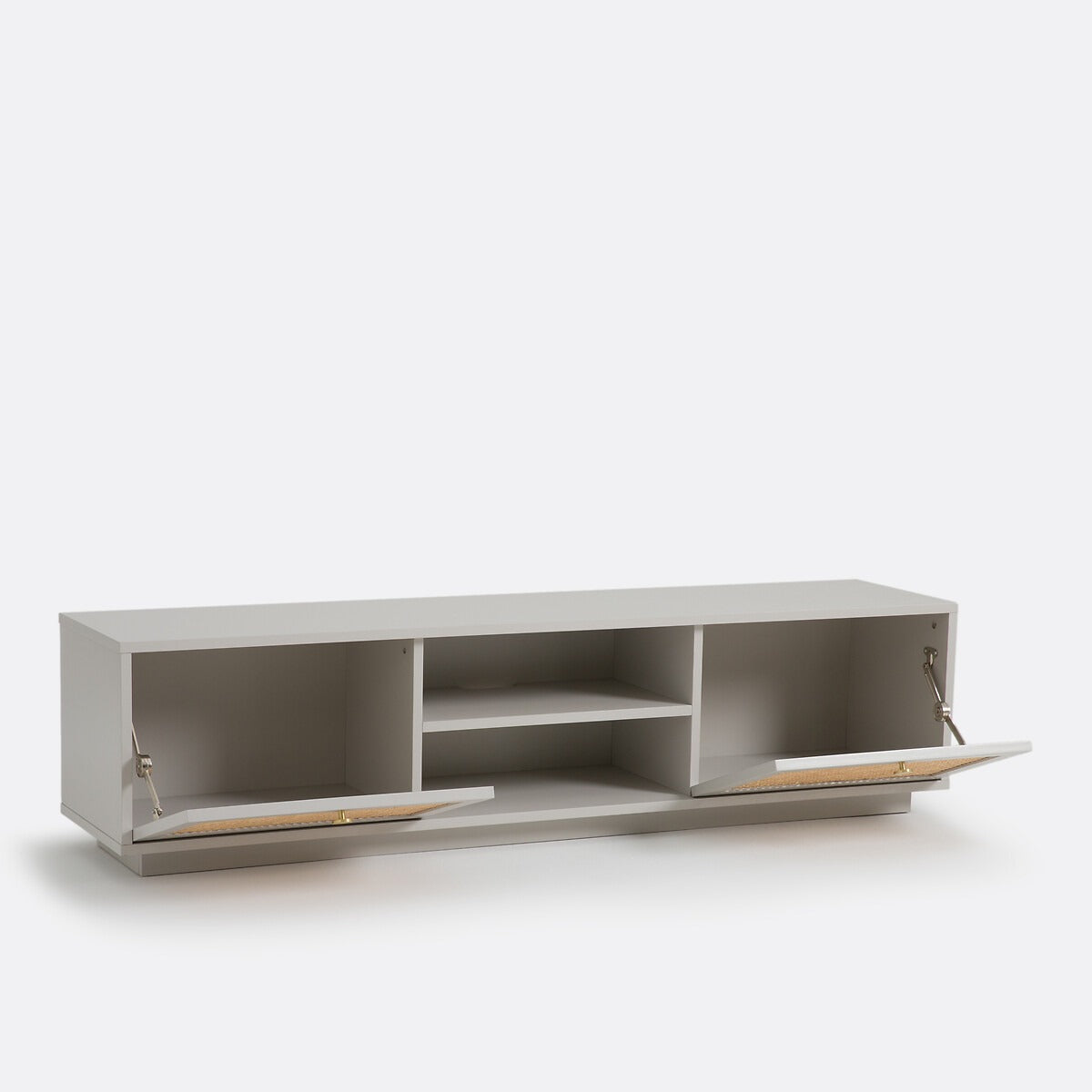 Dankzij de lichte kleur past dit TV-meubel perfect in een moderne, frisse woonkamer en zorgt het voor een opgeruimd en stijlvol geheel.