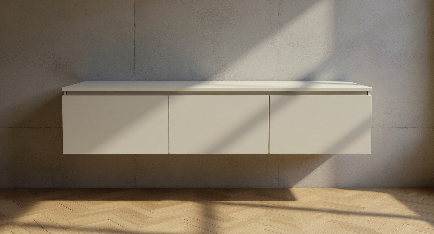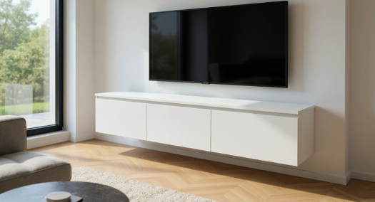 Veel kasten, zoals wandkasten of zwevende meubels, komen het mooist tot hun recht wanneer ze strak en veilig aan de muur hangen